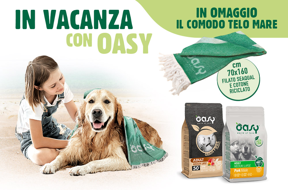 Acquista una confezione da 12kg degli alimenti per cani Oasy One Animal Protein o Grain Free Formula. ATTENZIONE! Verifica che sul sacco sia presente l'adesivo della promozione