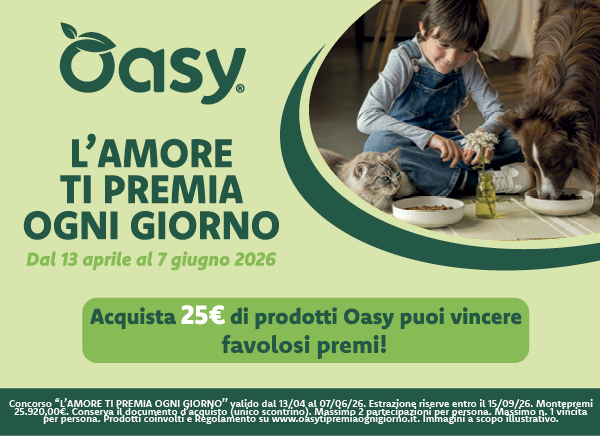Dal 13 aprile al 7 giugno 2026, acquista almeno 25 euro di prodotti Oasy, puoi vincere favolosi premi! Conserva e carica lo scontrino su www.oasytipremiaognigiorno.it