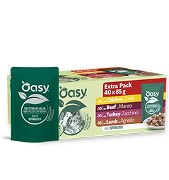 Oasy ti offre una vasta scelta di alimenti secchi, umidi, snack e lettiere vegetali per prenderti cura del tuo gatto.